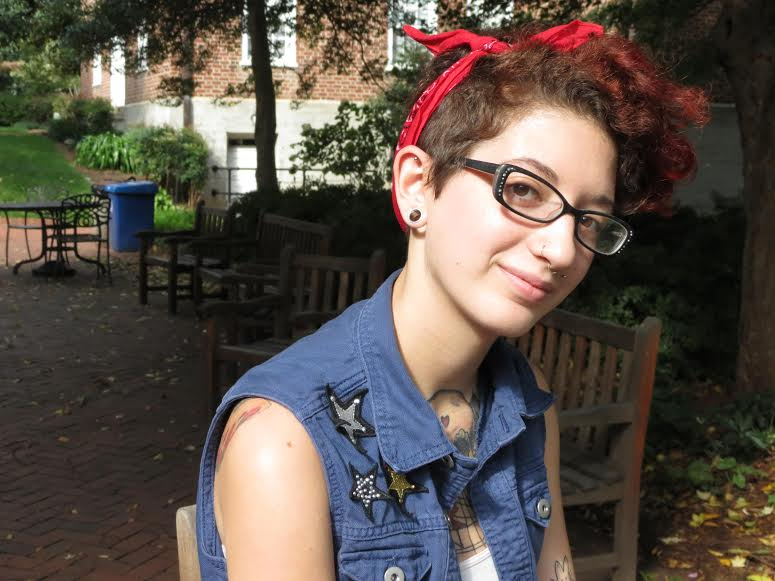 Sophomore Bri Levantino relaxing on Clewell Patio