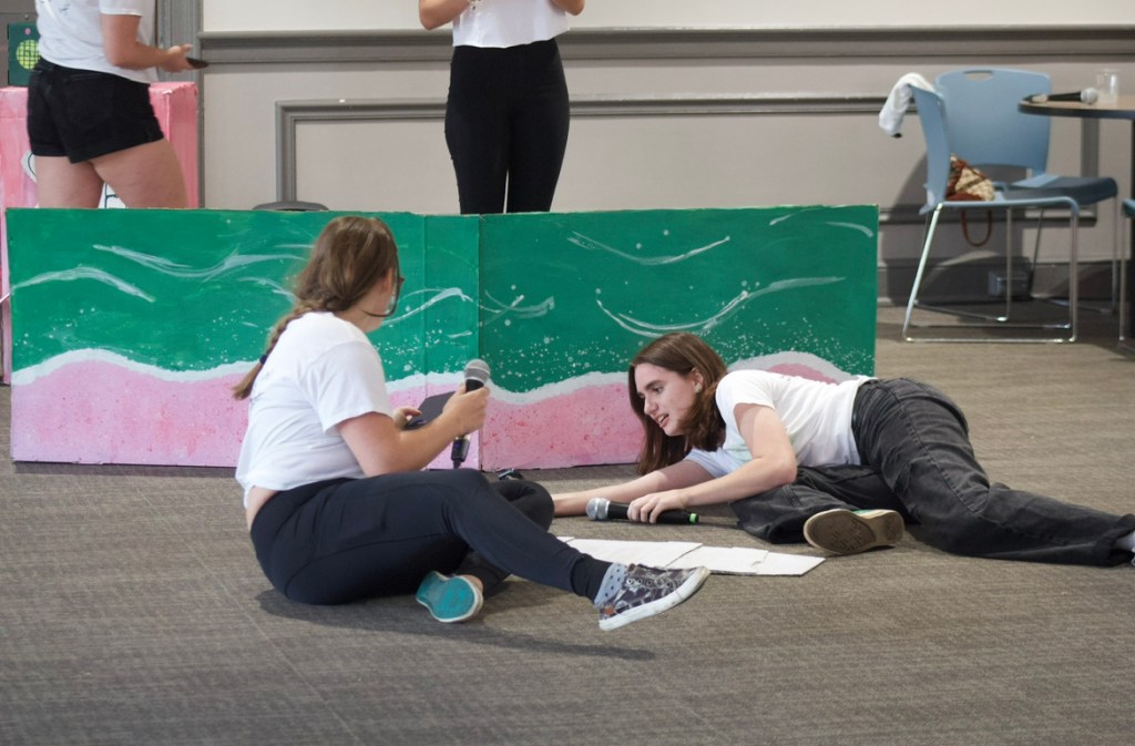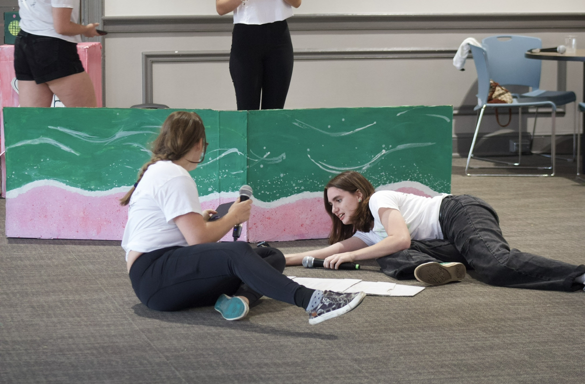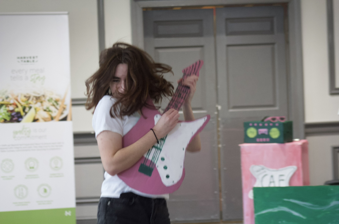 During the parade down to Bryant Hall, judges got to hear a reprisal of chants from earlier on as students held up their props, and the seniors caravanned through on a decorated pick-up truck. As they passed, a senior waved a pride flag proudly in the air- and everyone cheered. In the second act of skits, we got to hear some powerful musical performances from classes with some Chappell Roan thrown in, of course.