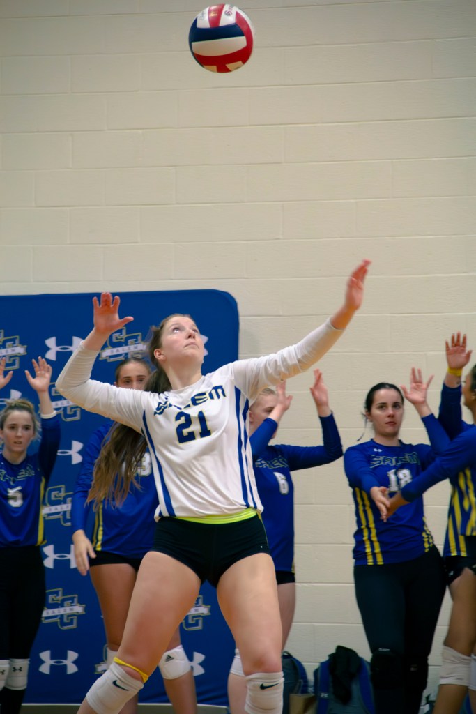 For the second round of the USA South Tournament, the Salem Spirits faced off against William Peace University on Thursday, Nov. 14, in their home gym. Continuing their strong performance, Salem swept the Pacers in three swift sets. They opened the first set with a dominant 25 to 14 win, followed by another victory in the second set at 25 to 18, and concluded the match with a final score of 25 to 14. With two impressive victories under their belt, the Salem Spirits were set to advance to the championship against Southern Virginia.
