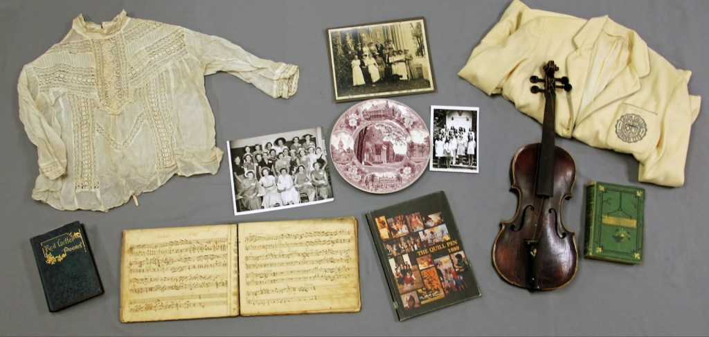 Well, wonder no more! Salem Academy & College’s archives contain years upon years of documents on all things Salem. The archives are located in the basement of Gramley library. While the archives may feel expansive due to how condensed it is, it’s really only the size of a library floor. Despite the small size, there’s a wide variety of materials available. These archived materials include flyers, yearbooks, newspapers, ledgers, scrapbooks, course catalogues, and even clothing! However, in recent years, there has been a decrease in student donations to the archives. Not as many people are saving their things or sending anything to the archives. So please… send your materials to the archives!